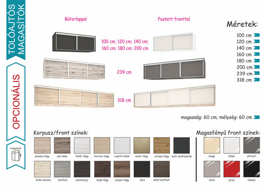 Galaxy felső sarok szekrény jobbos balos 60 cm széles 72 cm magas elem