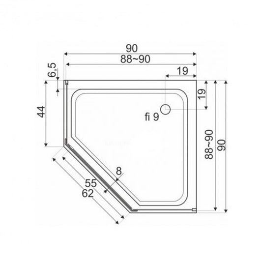 Glasgow 90 szögletes akril zuhanytálca 90x90x15 cm