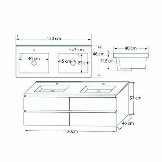 Porto 120 komplett fürdőszoba bútor rauna szil színben
