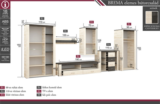 BREMA elemes bútorcsalád B1 90-es ruhás elem