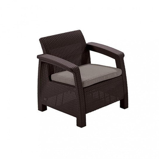 Corfu weekend set kerti bútor garnitúra, barna színben, meleg taupe párnával