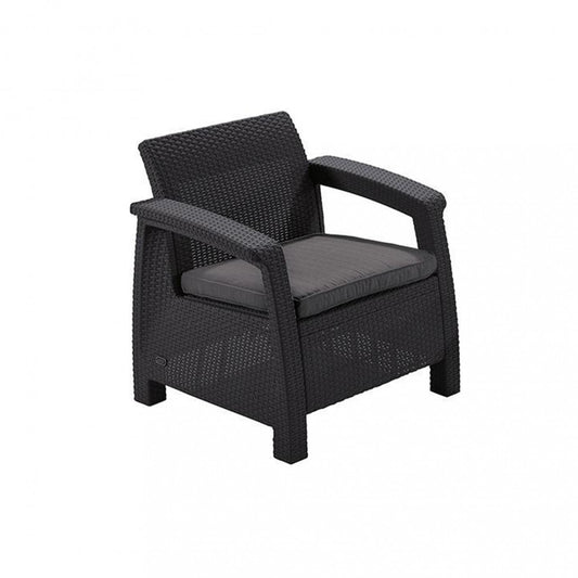 Corfu weekend set kerti bútor garnitúra, grafit színben, világos szürke párnával
