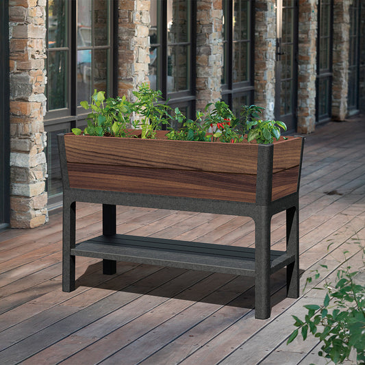 Deco elevated műanyag kerti virágláda alsó polccal 110L dió