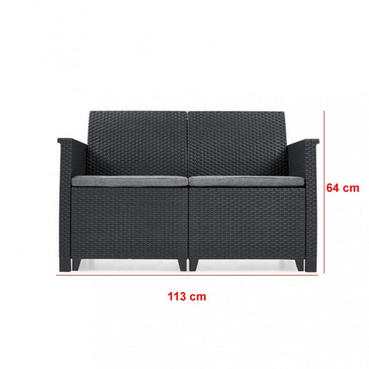 Emma műrattan kerti bútor szett 3 üléses kanapéval chicago asztallal grafit színben