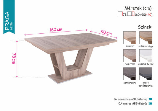 Prága étkezőasztal Száva fehér székkel - étkezőgarnitúra