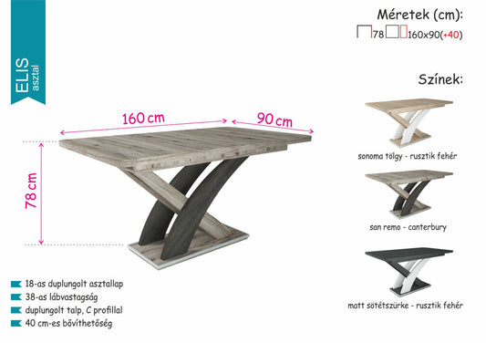 Elis étkezőasztal Lotti székkel - étkezőgarnitúra