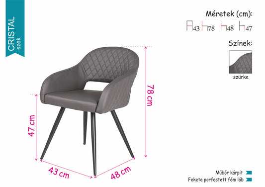 Flóra matt sötétszürke étkezőasztal Cristal székkel - étkezőgarnitúra