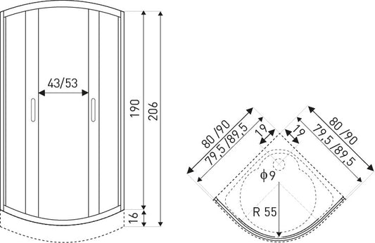 Intro 90x90 íves zuhanykabin tálca nélkül