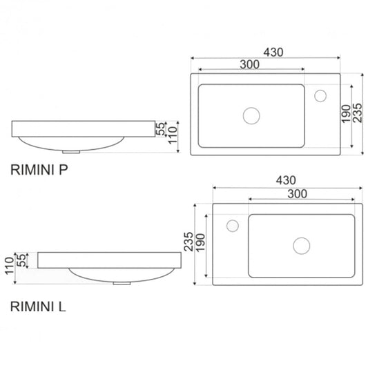 RIMINI-P Rimini kerámia design mosdó, jobbos beépítéssel 43x23 cm