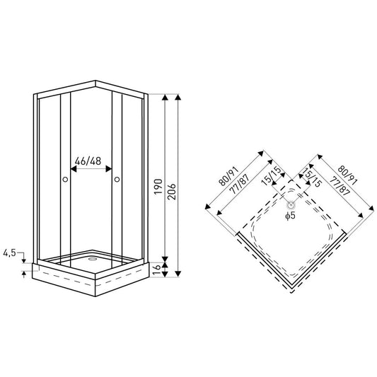 Madera 80 szögletes zuhanykabin tálcával 80x80x206 cm