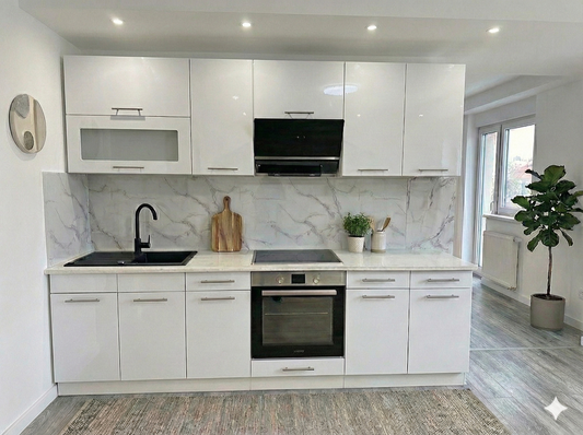 Luca 260 cm Magasfényű Konyhabútor blokk 72cm magas felső elemekkel