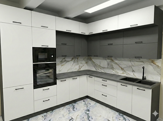 Luca 180x180cm / 220x140cm Magasfényű Sarokkonyhabútor Blokk