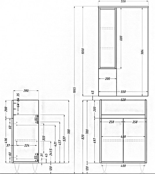 Bianca Plus 55 alsó szekrény mosdóval, magasfényű fehér színben