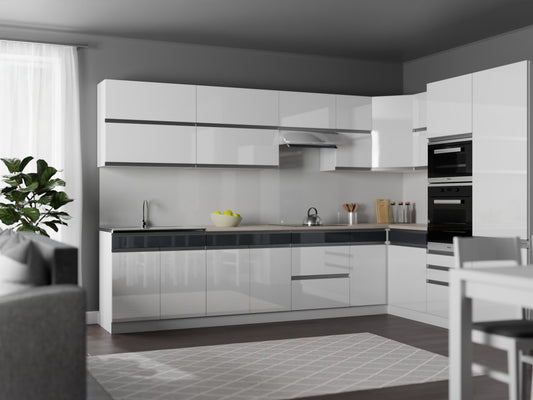 Luca 180x180cm / 220x140cm Magasfényű Sarokkonyhabútor Blokk