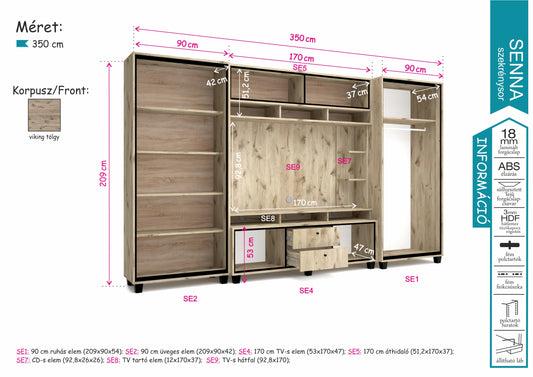 Ariana elemes szekrénysor 345 cm LED NÉLKÜL