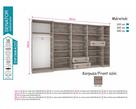 SZANDRA szekrénysor (Ajtós) (320cm)