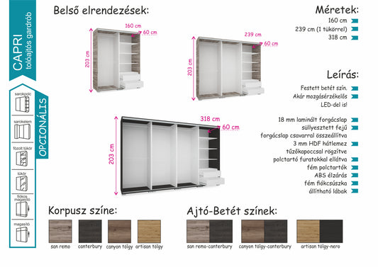 CAPRI TV-s tolóajtós gardrób 318 cm