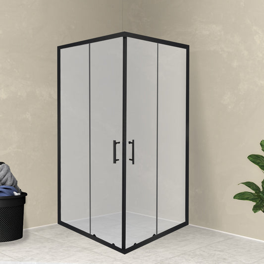 Spirit Clear 90x90x194 cm szögletes zuhanykabin, zuhanytálcával fekete
