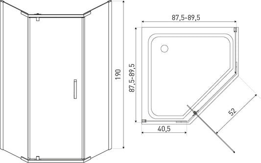 MADRID90 szögletes nyílóajtós zuhanykabin, 90x90x185 cm-es méretben