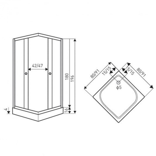 Madera 80 mélytálcás zuhanykabin 81x81x205 cm
