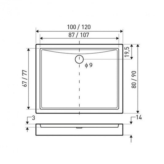 Victor univerzális szögletes zuhanytálca, 120x80x14 cm