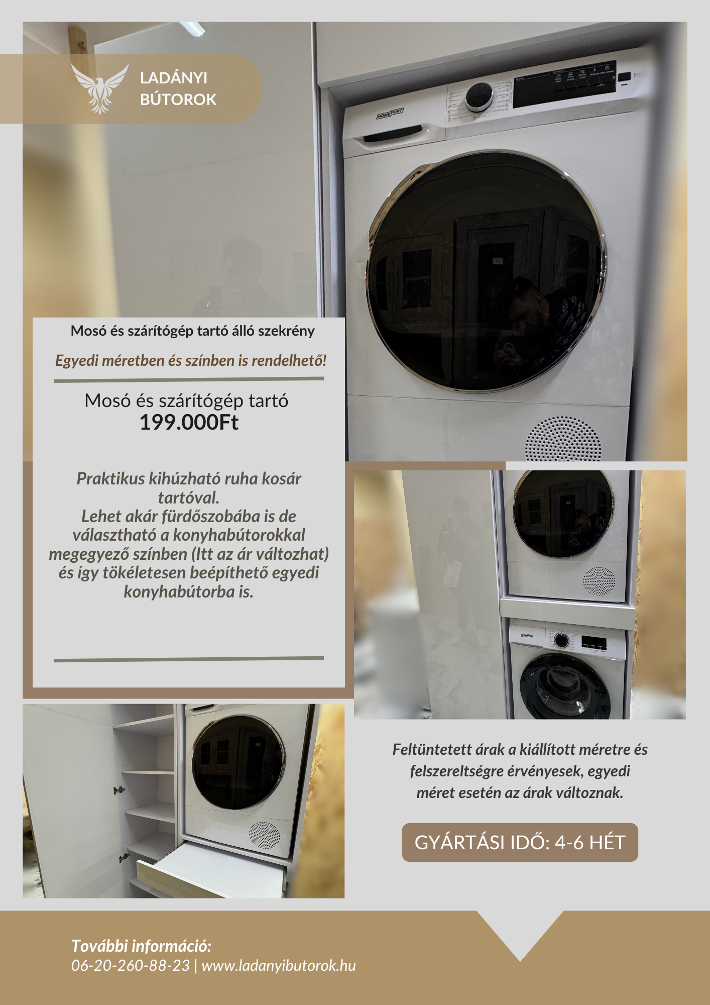 Lehet akár fürdőszobába is de választható a konyhabútorokkal megegyező színben (Itt az ár változhat) és így tökéletesen beépíthető egyedi konyhabútorba is.