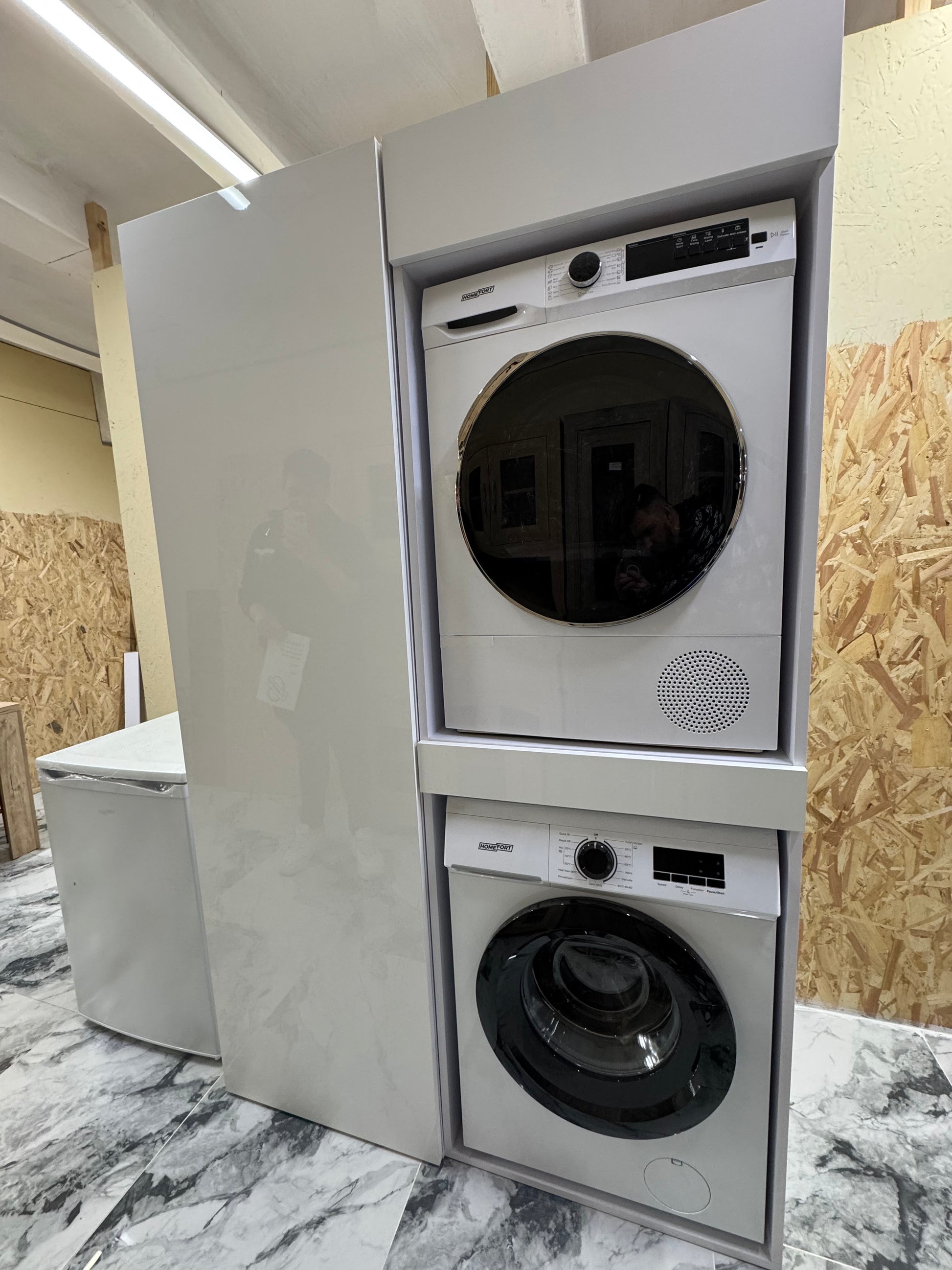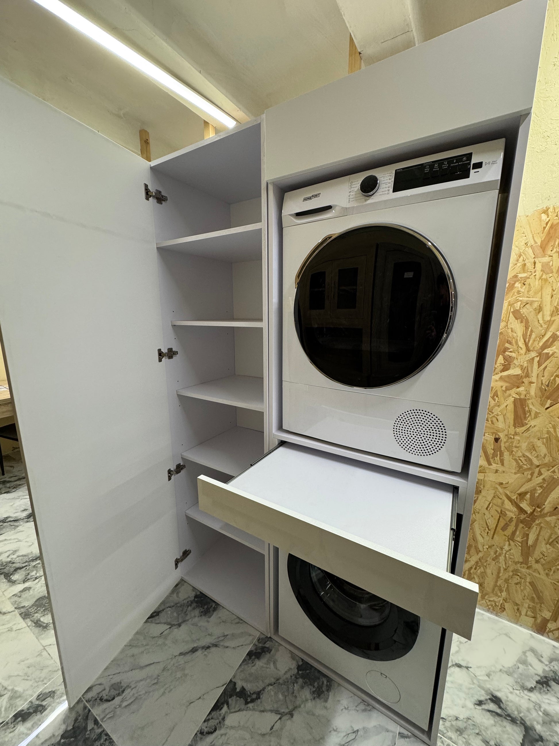 Mosógép és szárítógép tartó plusz álló polcos elem.