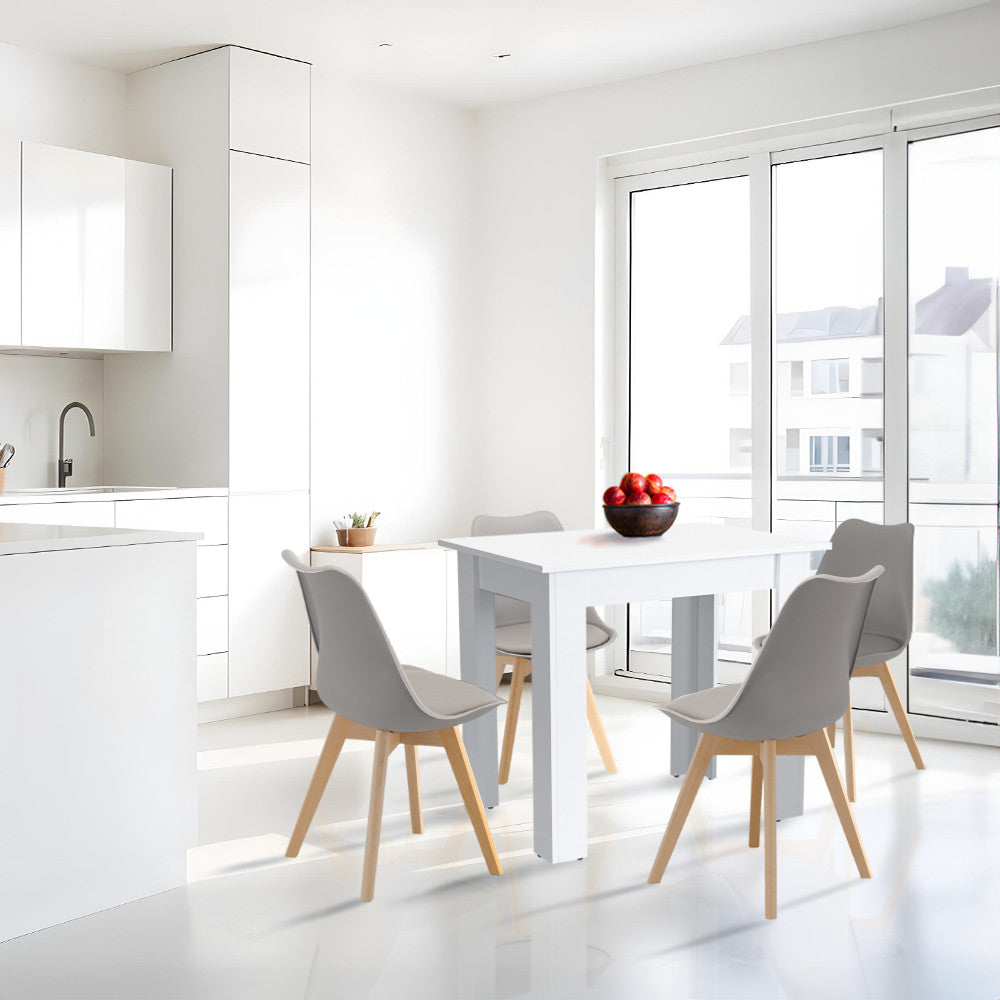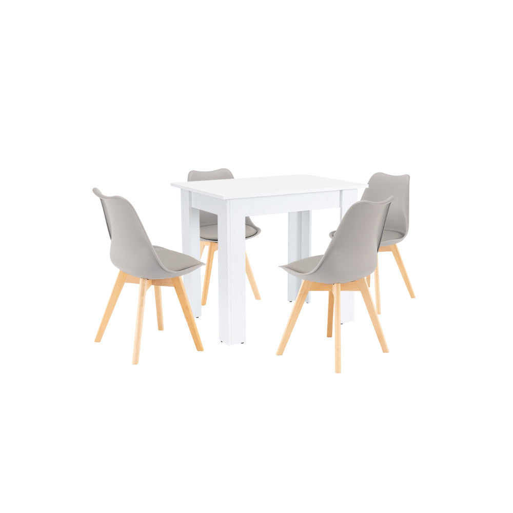 A Leziter márka Amina 4+1 étkezőgarnitúrája tökéletes választás modern lakásokba, éttermekbe és stílusos irodai konyhákba egyaránt. A garnitúra 4 db székből és 1 db asztalból, a népszerű Silla étkezőszék és a Yorki standard étkezőasztal harmonikus kombinációjából áll, egyesítve a funkcionalitást az időtlen dizájnnal. Az étkezőszett ideális 4 fő leültetésére és méretei miatt praktikusan elhelyezhető kisebb helyiségekbe is.
