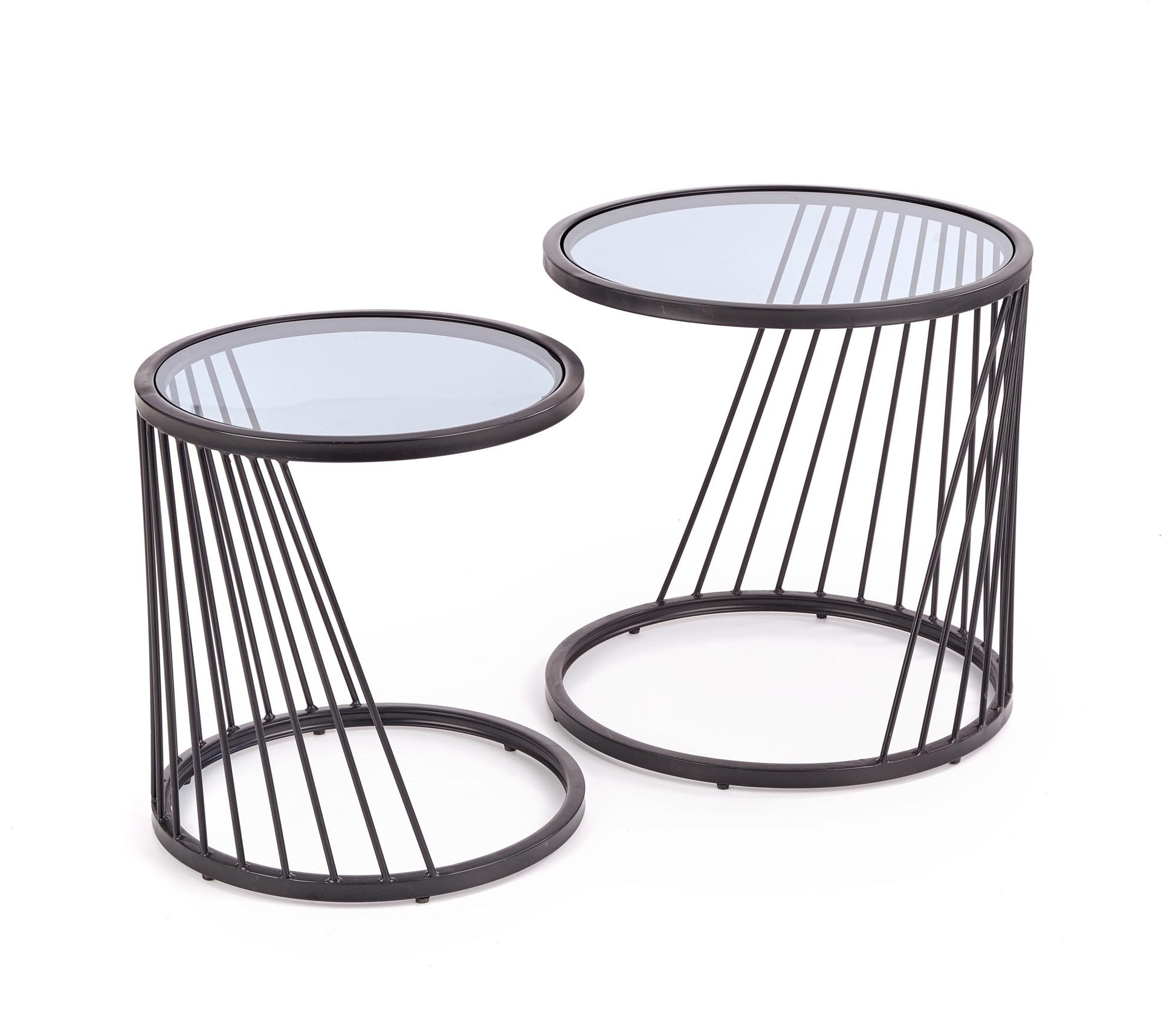 méretek: 50/50 cm oraz 42/45 cm, anyaga: üveg / porszórt acél, szín: füstölt / fekete