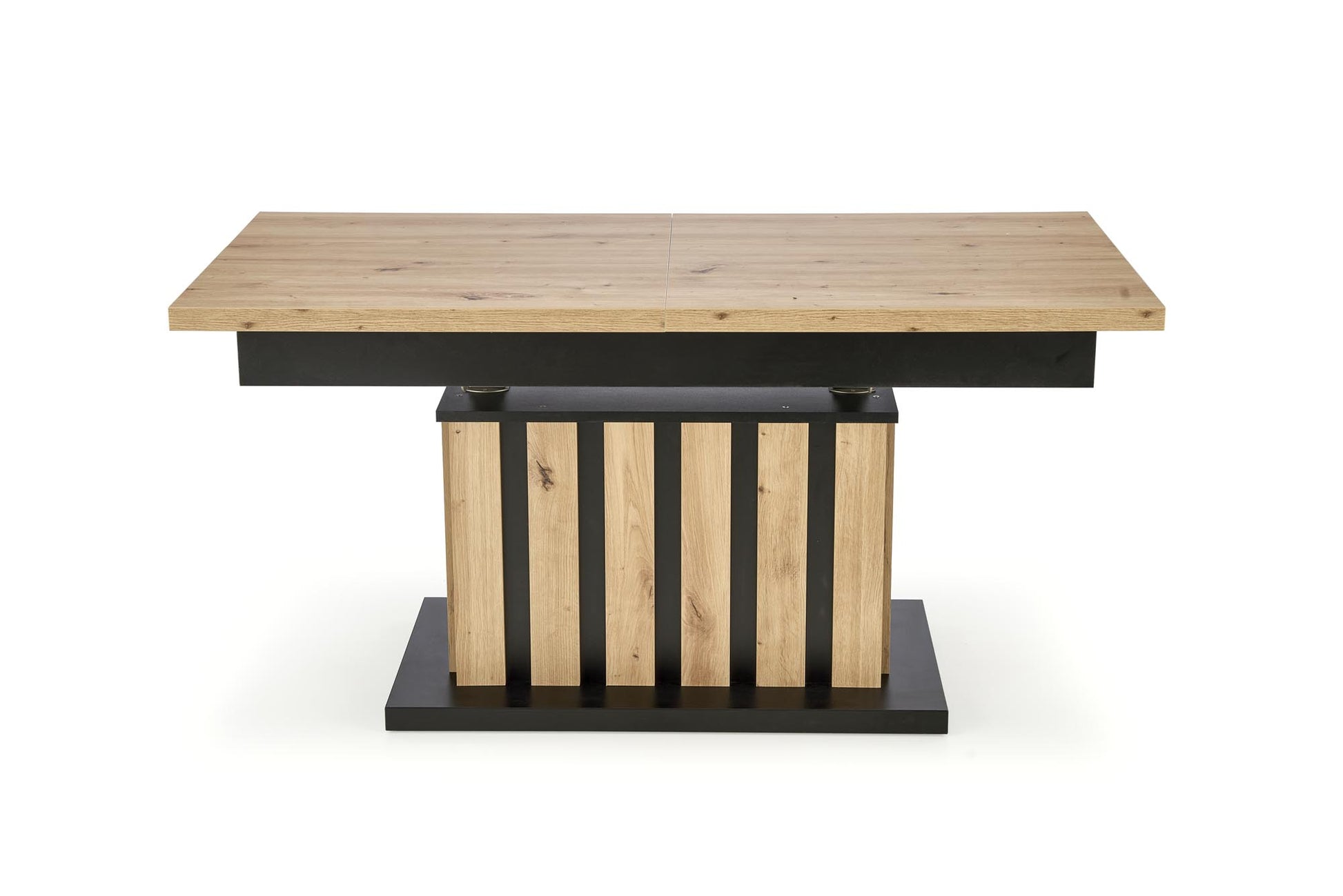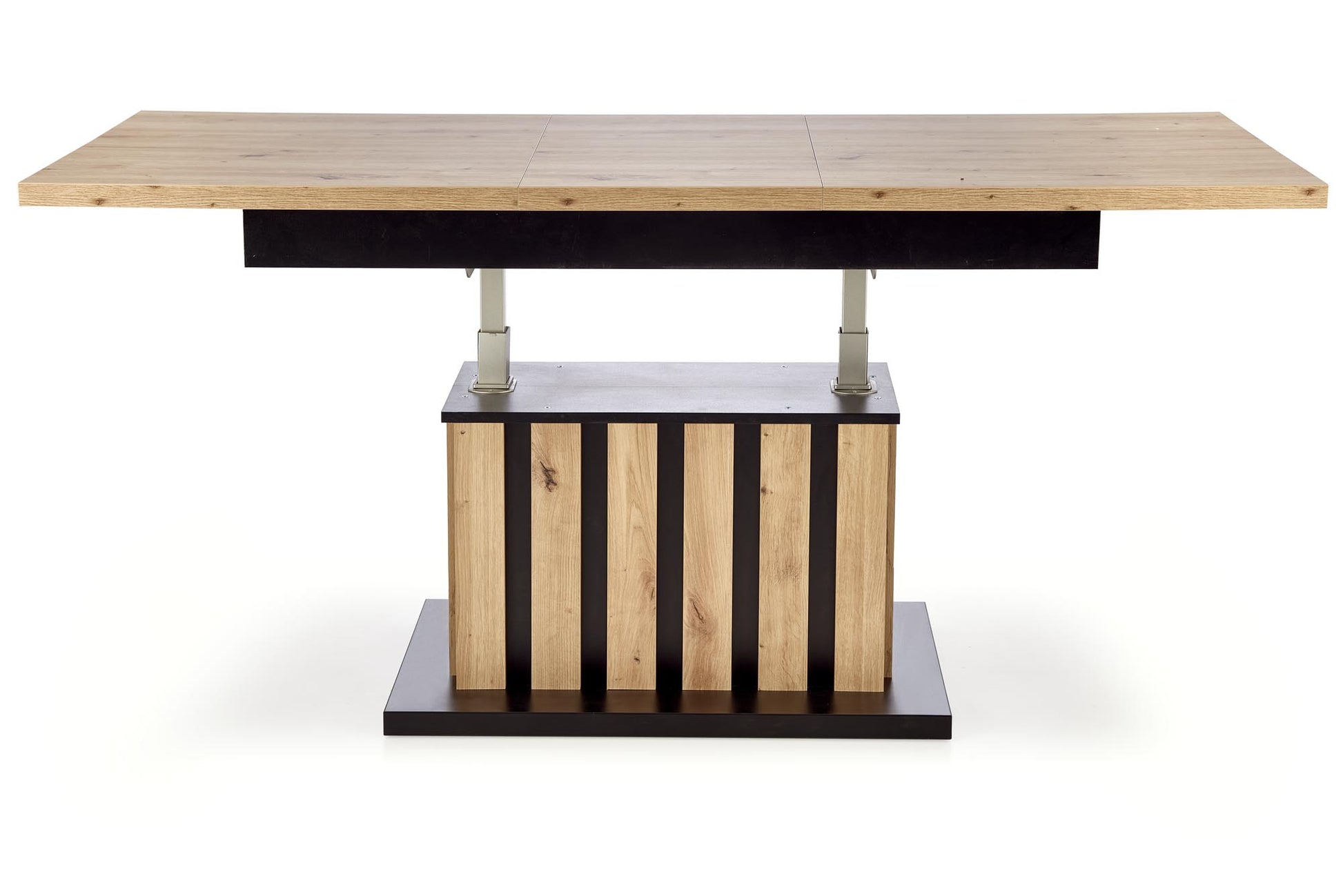 méretek: 130-170/65/65-82 cm, emelhető dohányzóasztal, anyaga: laminált forgácslap, szín: kézműves tölgy / fekete