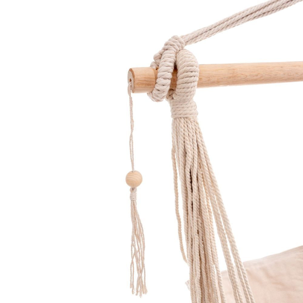 A jellegzetes bohém stílusa számos enteriőrbe tökéletesen illeszkedik. Karaktert kölcsönöz minden kertnek. Strapabíró anyagokból készült, a fa tartó pedig biztosítja a szerkezet stabilitását. Az ülés pamutból készült, amely kellemes tapintású a bőrnek.