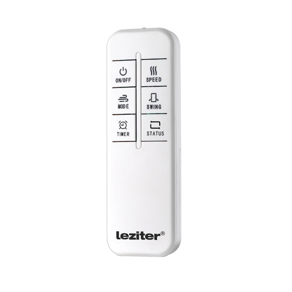 A Leziter Breeze fehér színű, tartós ABS műanyagból készült. Ez az anyag ellenáll a hőingadozásnak, nem színeződik el könnyen, és kiválóan tisztítható. A ventilátor levegőkilépő rácsa biztonságos és strapabíró, a levehető talp pedig megkönnyíti a szállítást és tárolást.