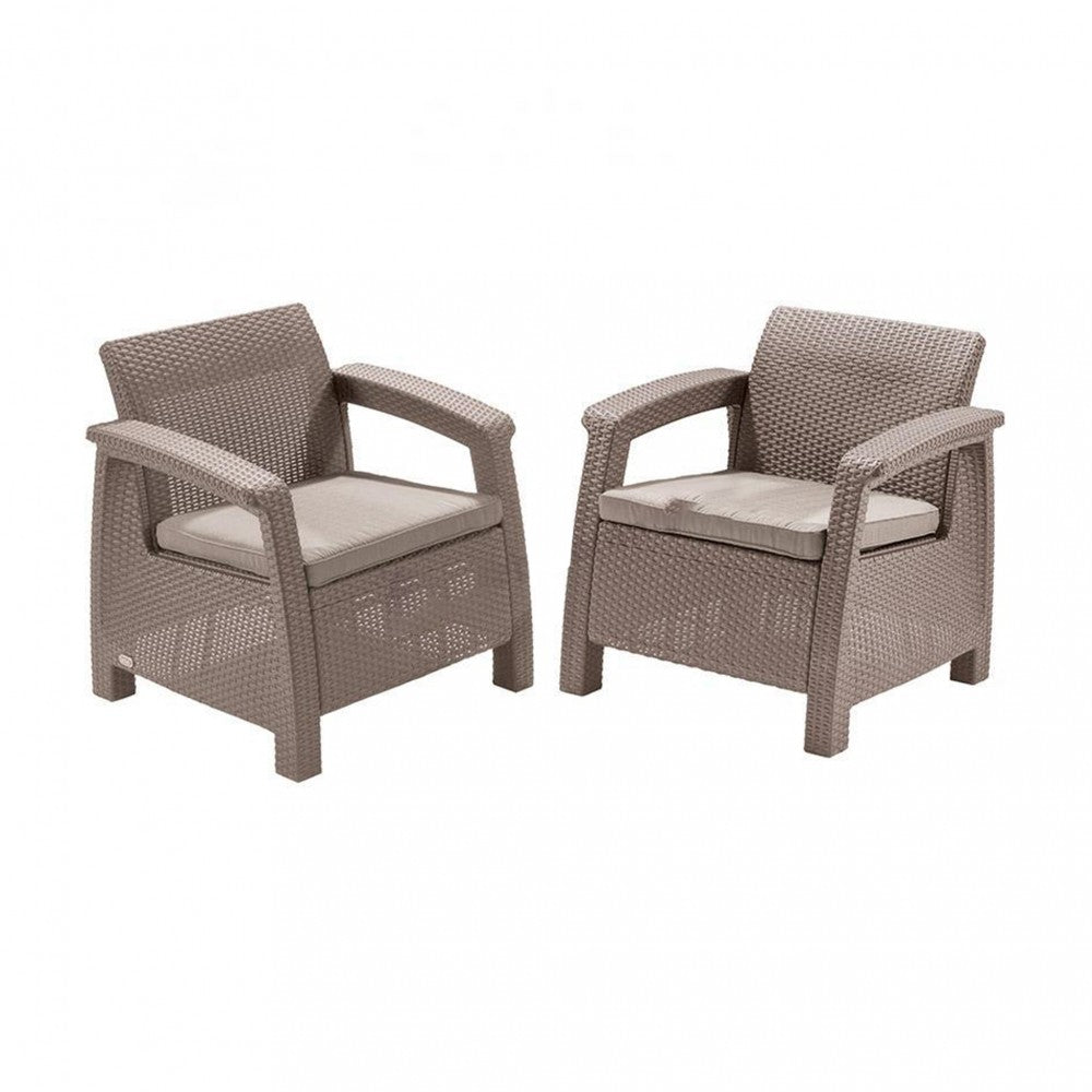 A Corfu Large II Lyon cappuccino színű kerti bútorkészlete bármilyen elrendezésben nagyszerűen mutat. Két dupla kanapéból, két fotelből, hat lapos párnából és egy dohányzóasztalból áll. A készlet nemcsak a kertbe illeszkedik, hanem a teraszra is helyezhető az étterem és kávézó mellett. A korfu bútorok külső és belső használatra egyaránt alkalmasak. Visszafogott, grafit színekkel és univerzális formájúak, és kialakításuk a globális trendekre utal. A kerti szett egy emelt Corfu Lyon Duo asztallal nagyszerű kényelmet nyújt használatra.