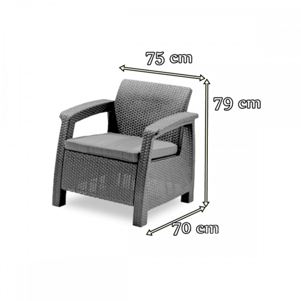 Első pillantásra úgy tünhet, hogy a bútorok rattanból készültek, de valójában egy kiváló minőségű müanyagból hozták létre, amely ellneáll a szélsőséges időjárási viszonyoknak. Lapos párnák, széles kartámaszok és kontúros háttámlák biztosítják a székek és kanapék kényelmét. A bútorgyártó a Curver márka, amely kiváló minőségű kerti bútorokat készít fröccsöntött műanyagból. Egy csoportban működik a közismert és népszerű Keter és Allibert márkákkal Lengyelországban.