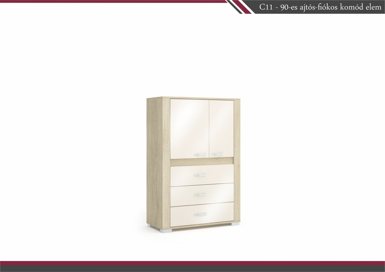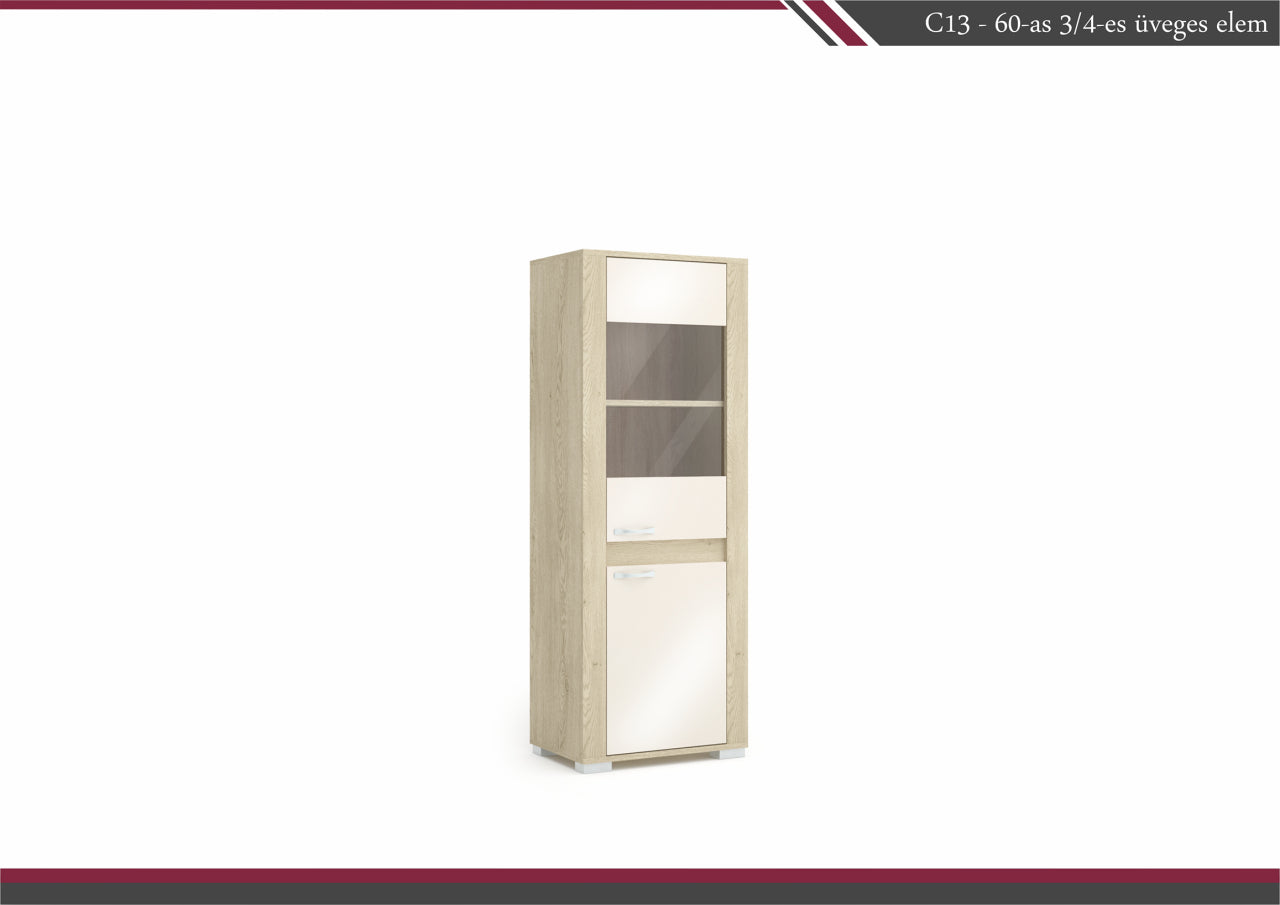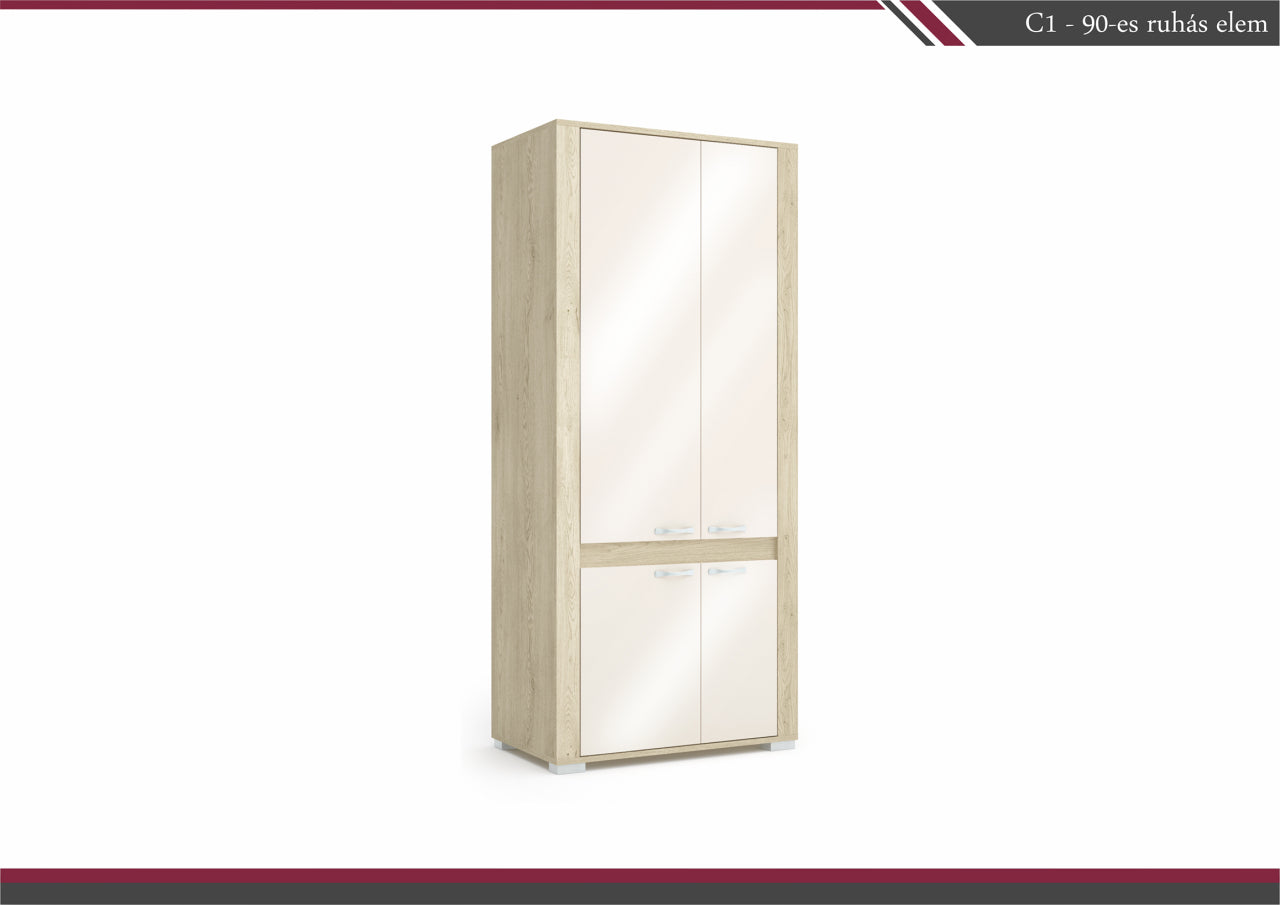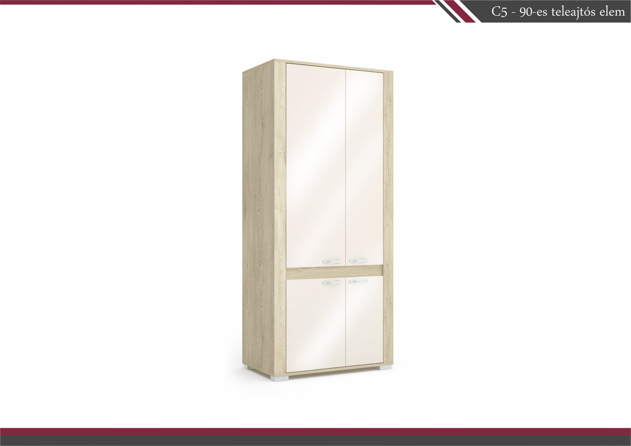 A 18 elemből álló Cortina elemes bútorcsalád cotta cremona színű korpuszához magasfényű beige front társul, így elegáns, letisztult elemekből álló összeállítás készíthető. A ruhás, polcos és komód elemekből található teleajtós és üveges kialakítású is, így teljesen a saját igényünkre szabhatjuk nappalink vagy akár hálónk berendezését. Az üveges elemekbe opcionálisan LED világítás is kérhető.