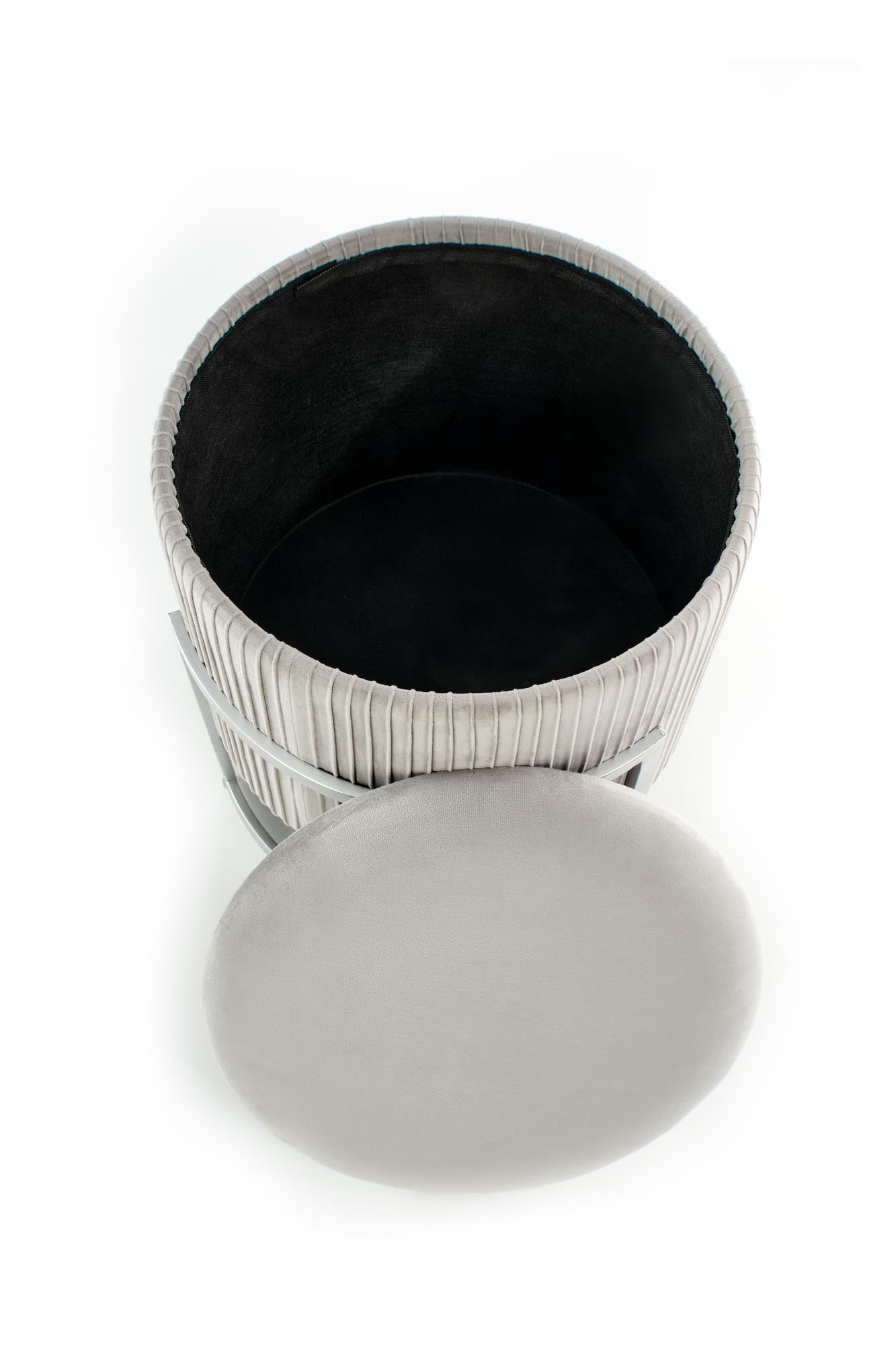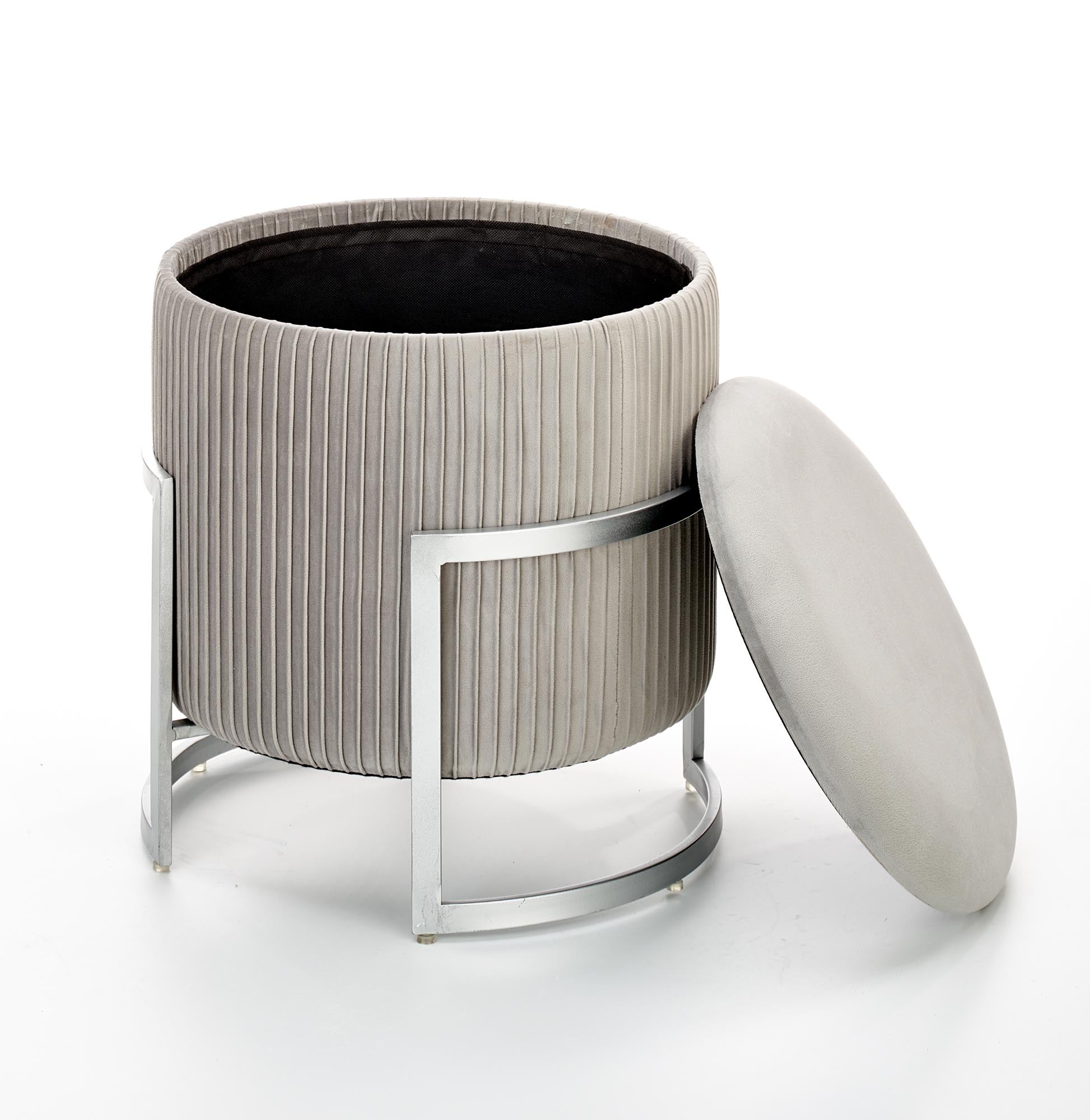 méretek: fi40/46 cm, puff tároló funkcióval, anyaga: bársonyszövet / porszórt acél, színek: világosszürke,
