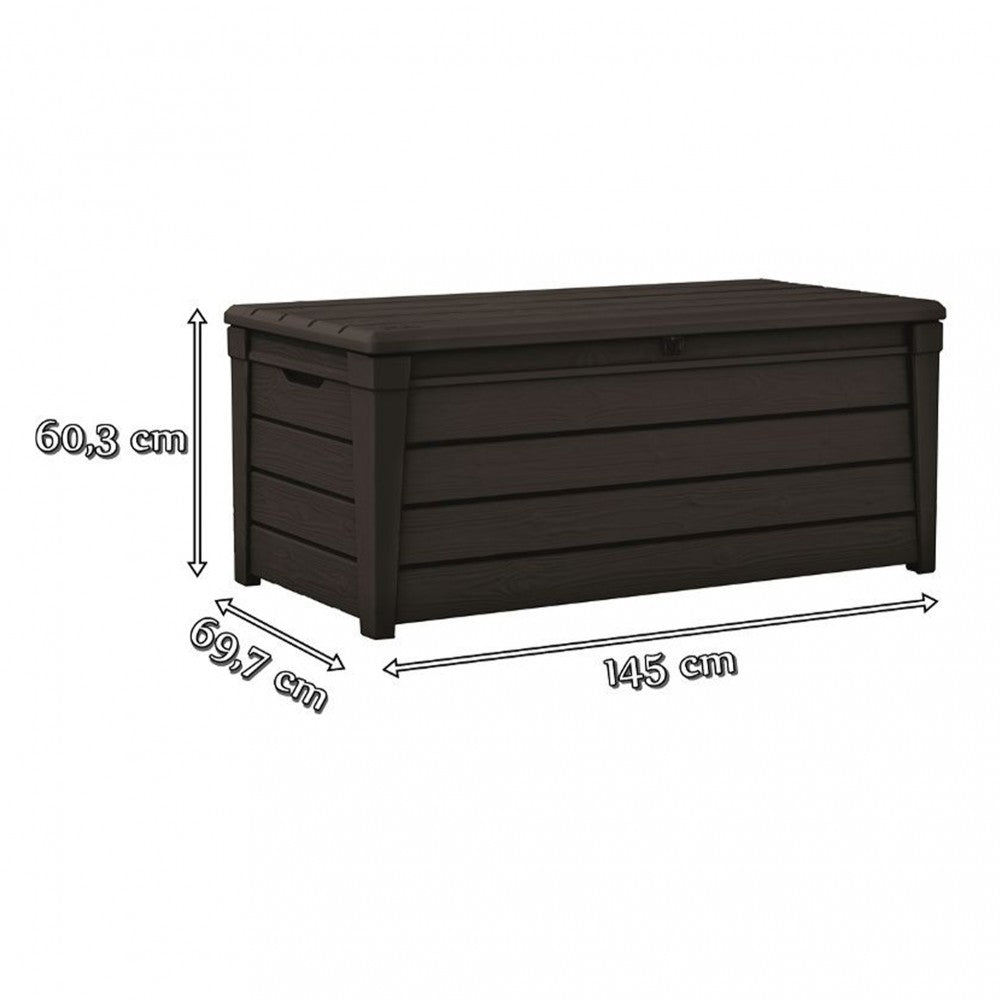 A funkcionális Keter Brightwood Box 455L kerti doboz univerzális megoldás a kertre, teraszra vagy erkélyre. A doboz szerszámok, játékok, kerti kiegészítők és bútorpárnák tárolására használható. Nincsenek ellenjavallatok. Mindent tárolhat, amelynek súlya 50 kilogramm vagy kevesebb.