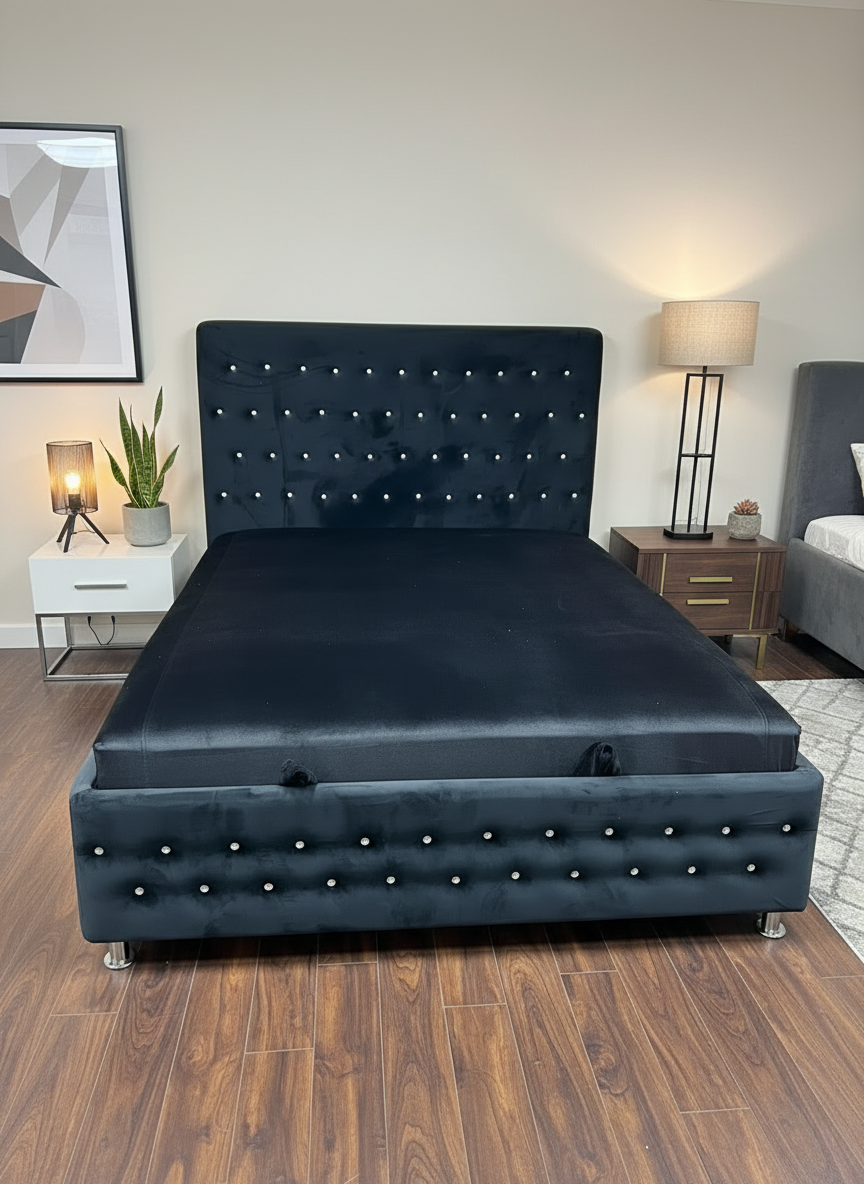 Erősített rugós, nagy ágynemű tartóval, hatalmas 140 cm MAGAS FEJTÁMLA.
