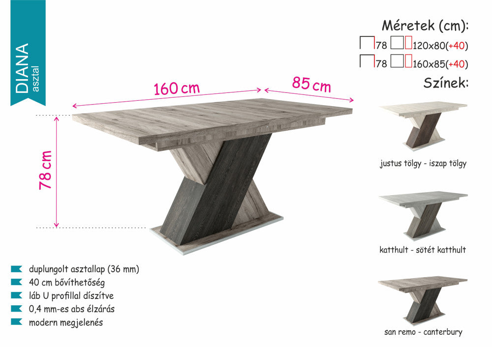 Diana étkezőasztal Lotti székkel - étkezőgarnitúra