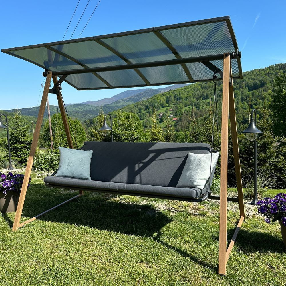 3 ülőhelyes Duisburg hintaágy polikarbonát előtetővel