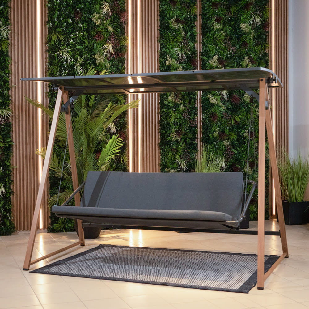 - Elegáns kialakítású 3 személyes kerti hinta, amely tökéletes egy divatos kertbe vagy teraszra