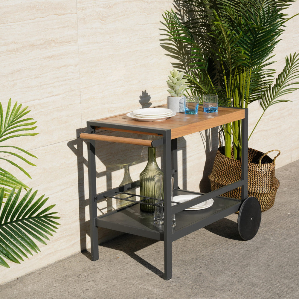 Az elegáns kerti zsúrkocsi mindenki számára ajánlott, aki értékeli a funkcionális és elegáns megoldásokat . A stílusos dizájn és a praktikus felépítés kombinációja olyan terméket eredményez, amely sok évszakon át hasznos lesz. Ez egy mobilbár a nappalihoz, a kerthez és a teraszhoz. A polcokon kényelmesen szállíthat ételt és italt vendégei számára. A minimalista dizájn tökéletesen illeszkedik az aktuális kerttervezési trendekbe. Ez az univerzális bútordarab tökéletes lesz bulikhoz, szeretteivel való találkozókhoz és baráti eseményekhez. Nyáron elhelyezheti a medence mellett, hogy kéznél legyenek a hideg italok.