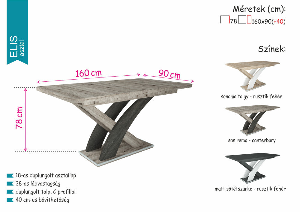 Elis étkezőasztal Mira székkel - étkezőgarnitúra