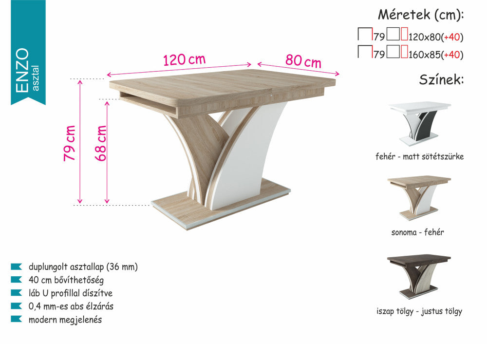 Enzo étkezőasztal Berta székkel - étkezőgarnitúra