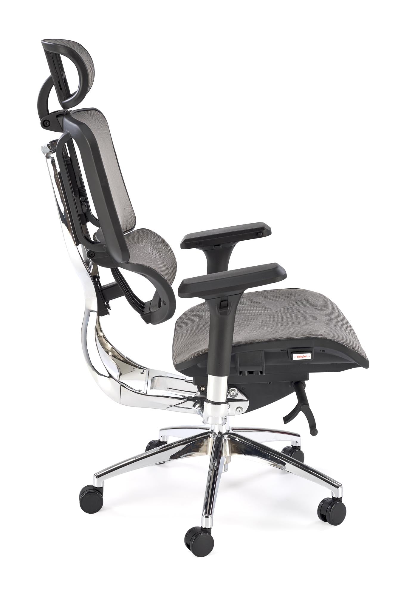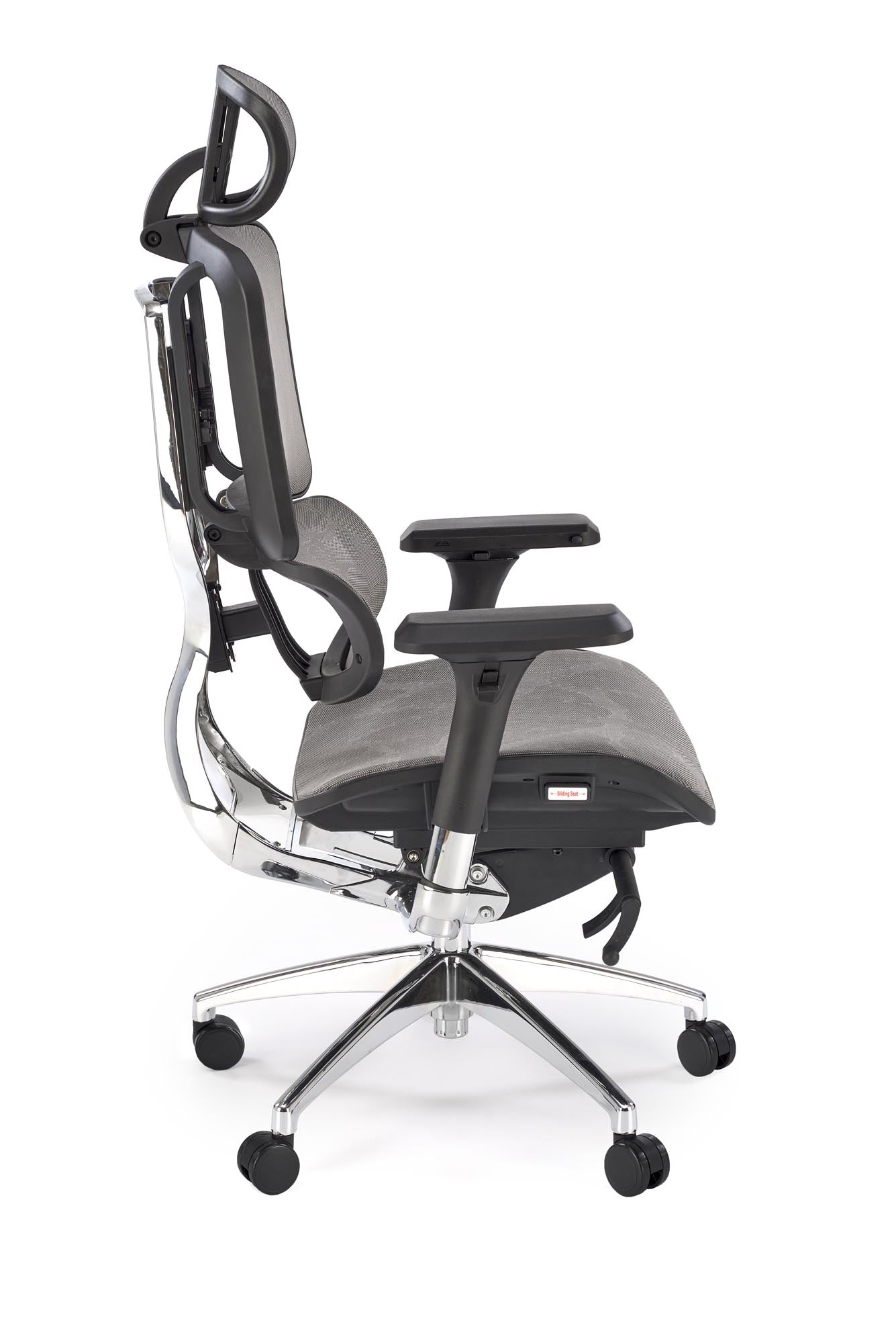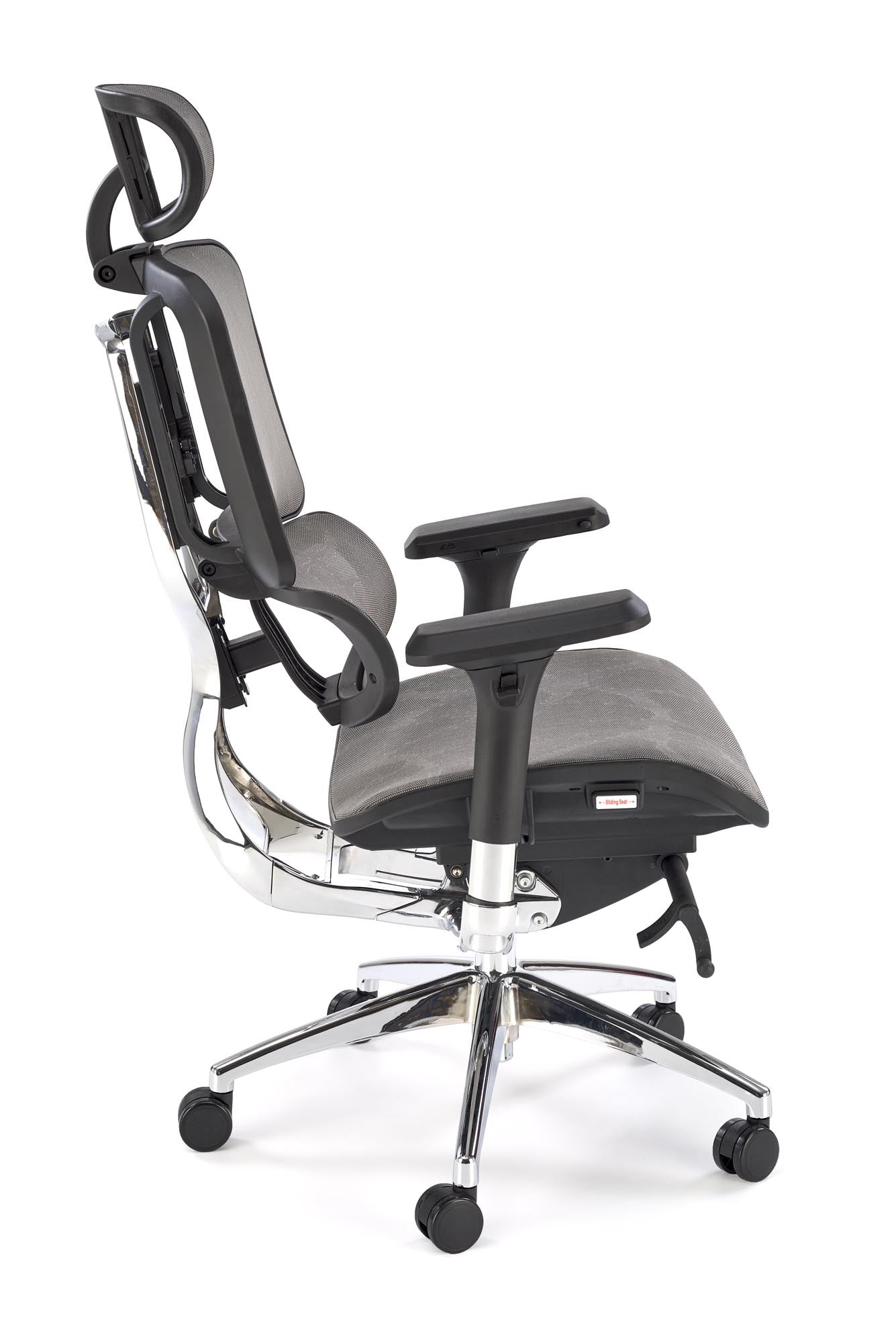 méretek: 72/70/130-139/50-59 cm; szinkron mechanizmus / háttámla magassága állítható / állítható kartámasz / állítható fejtámla / alumínium talp / csúszó ülés, háló, szín: szürke