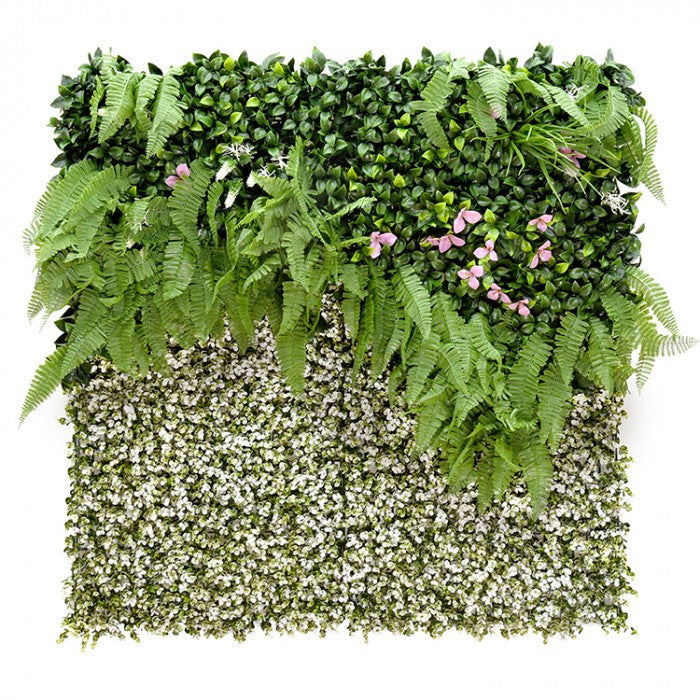 A modern műnövényes panel a növényzet és a természet hosszan tartó hatása öntözés nélkül. Megnövekedett fakulás és szennyeződés elleni ellenállás jellemzi.