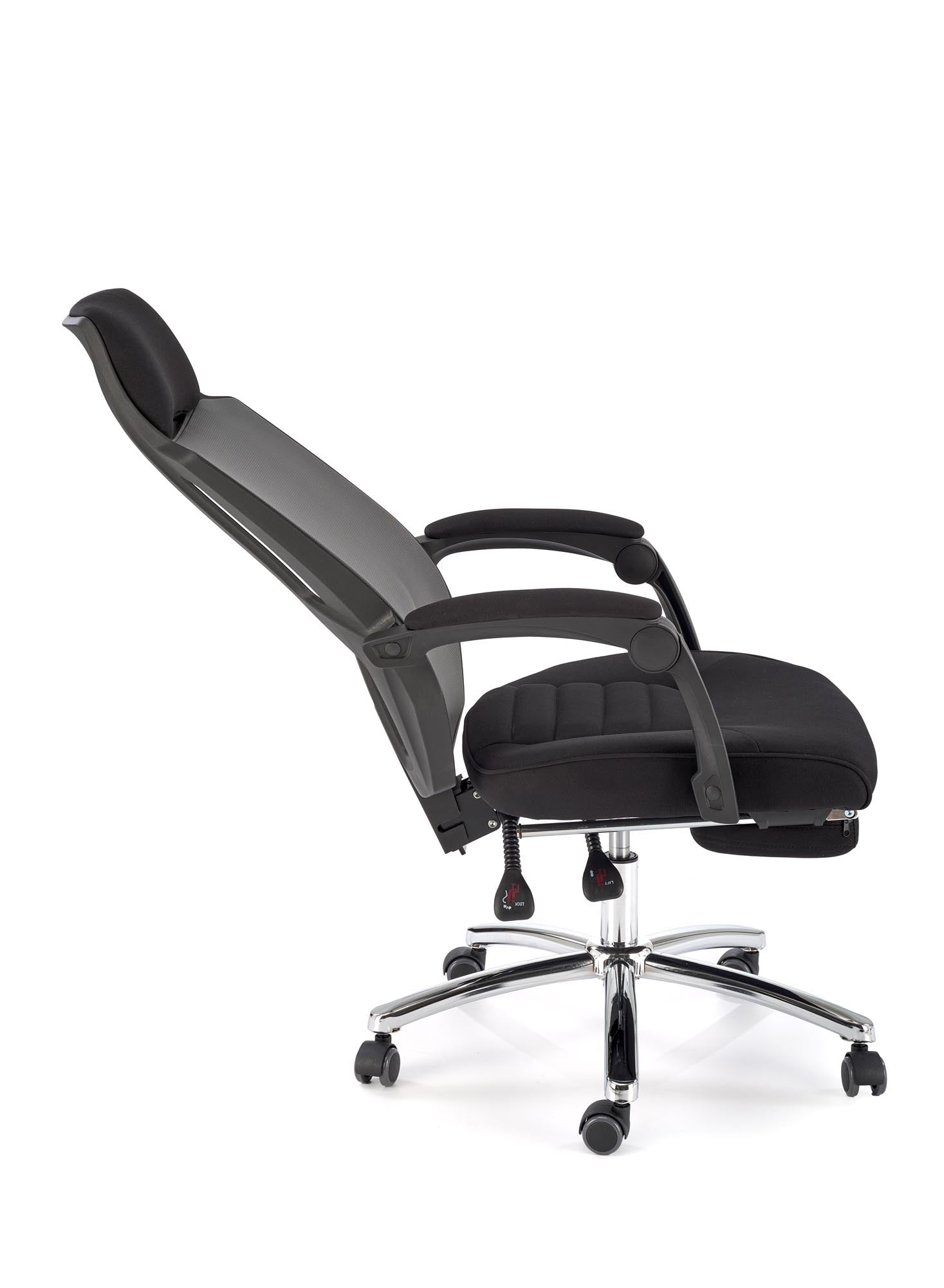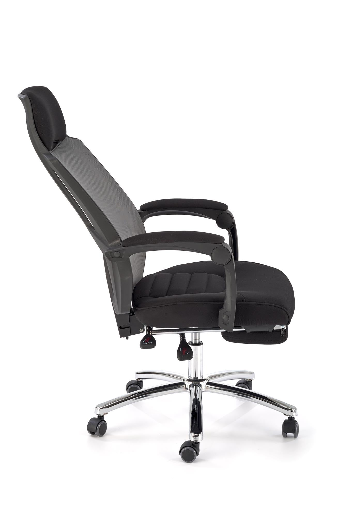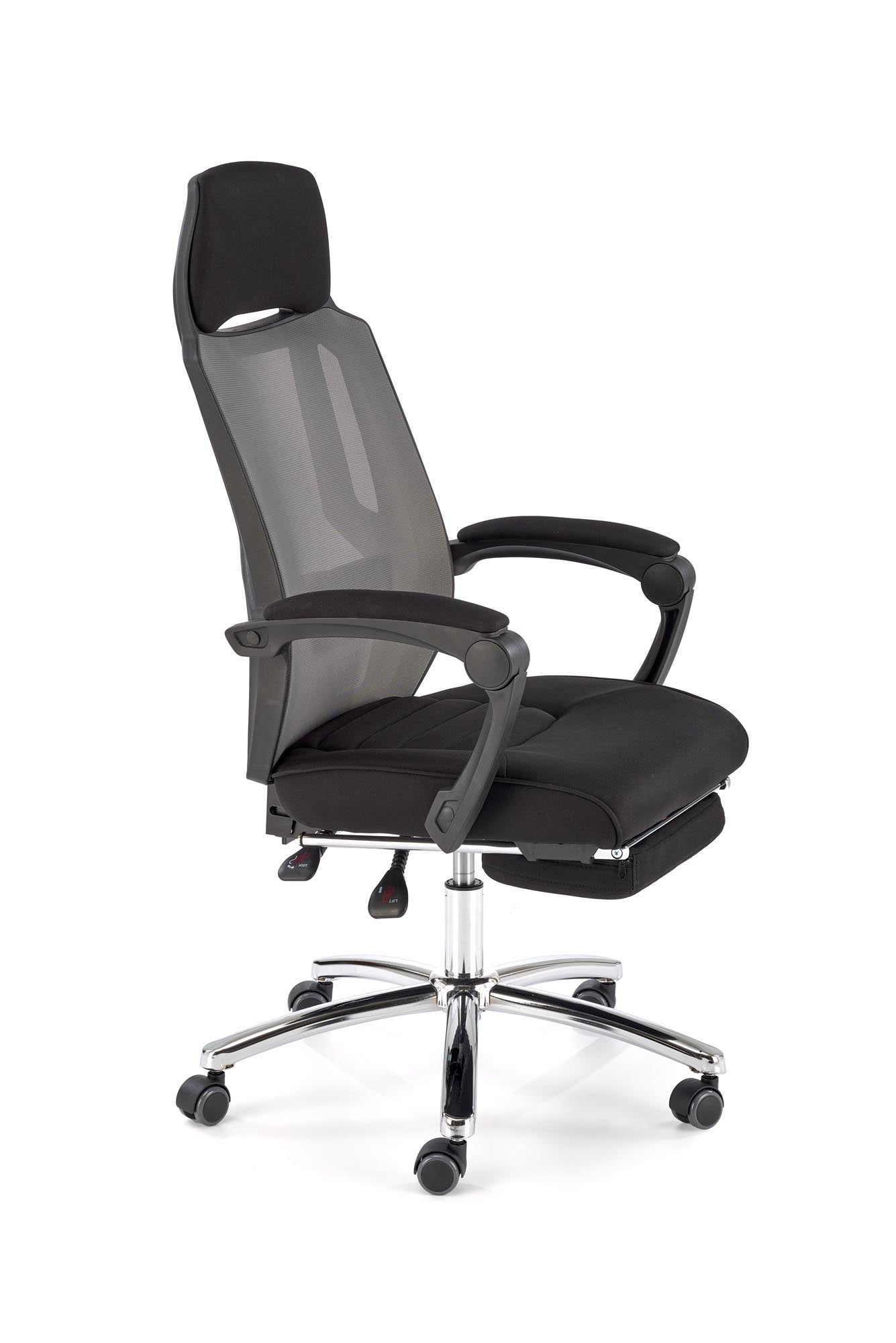 méretek: 65/70-110/110-118/45-53 cm, TILT mechanizmus / lehajtható lábtartó, membránszövet / háló, szín: fekete / szürke