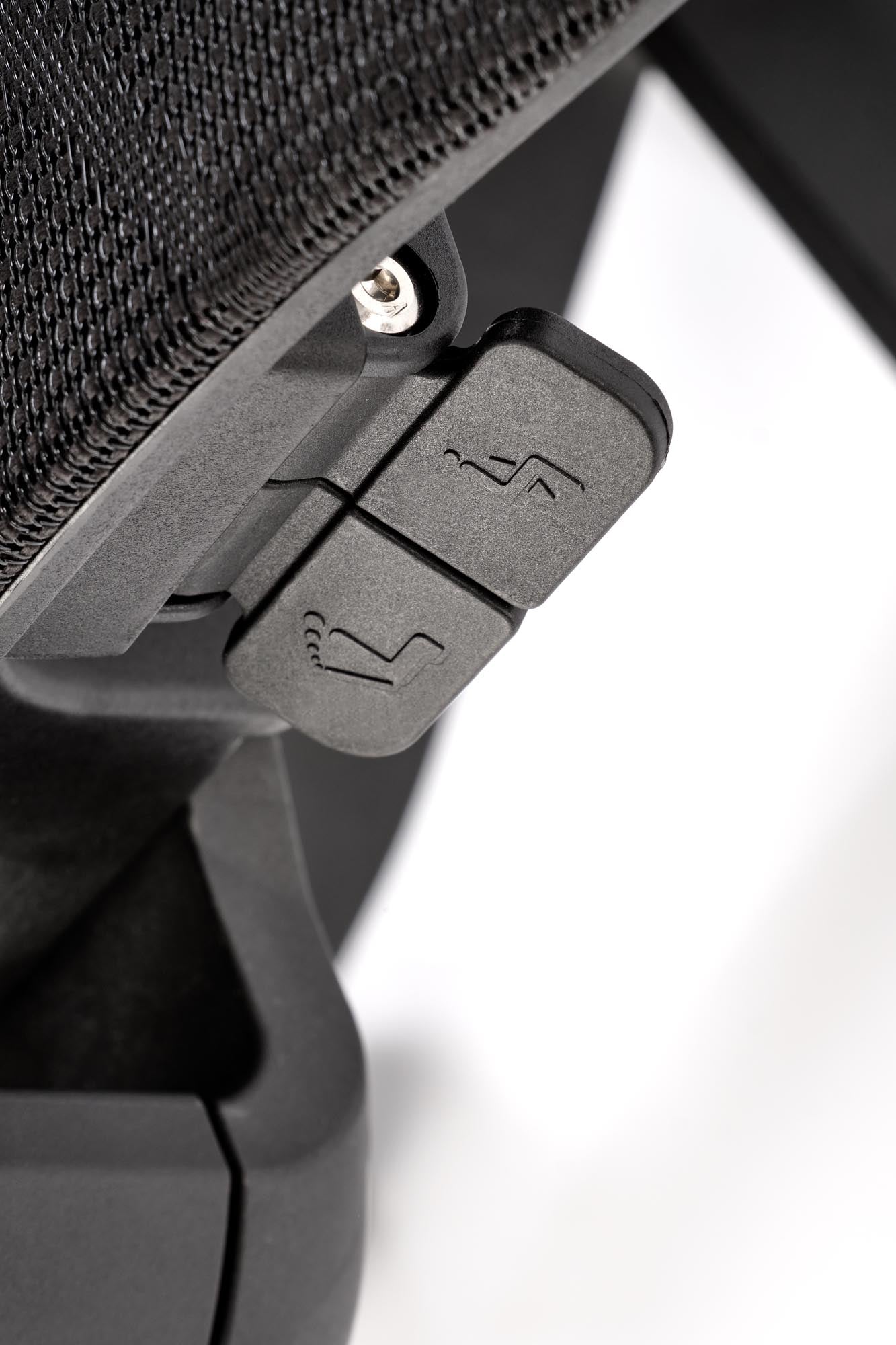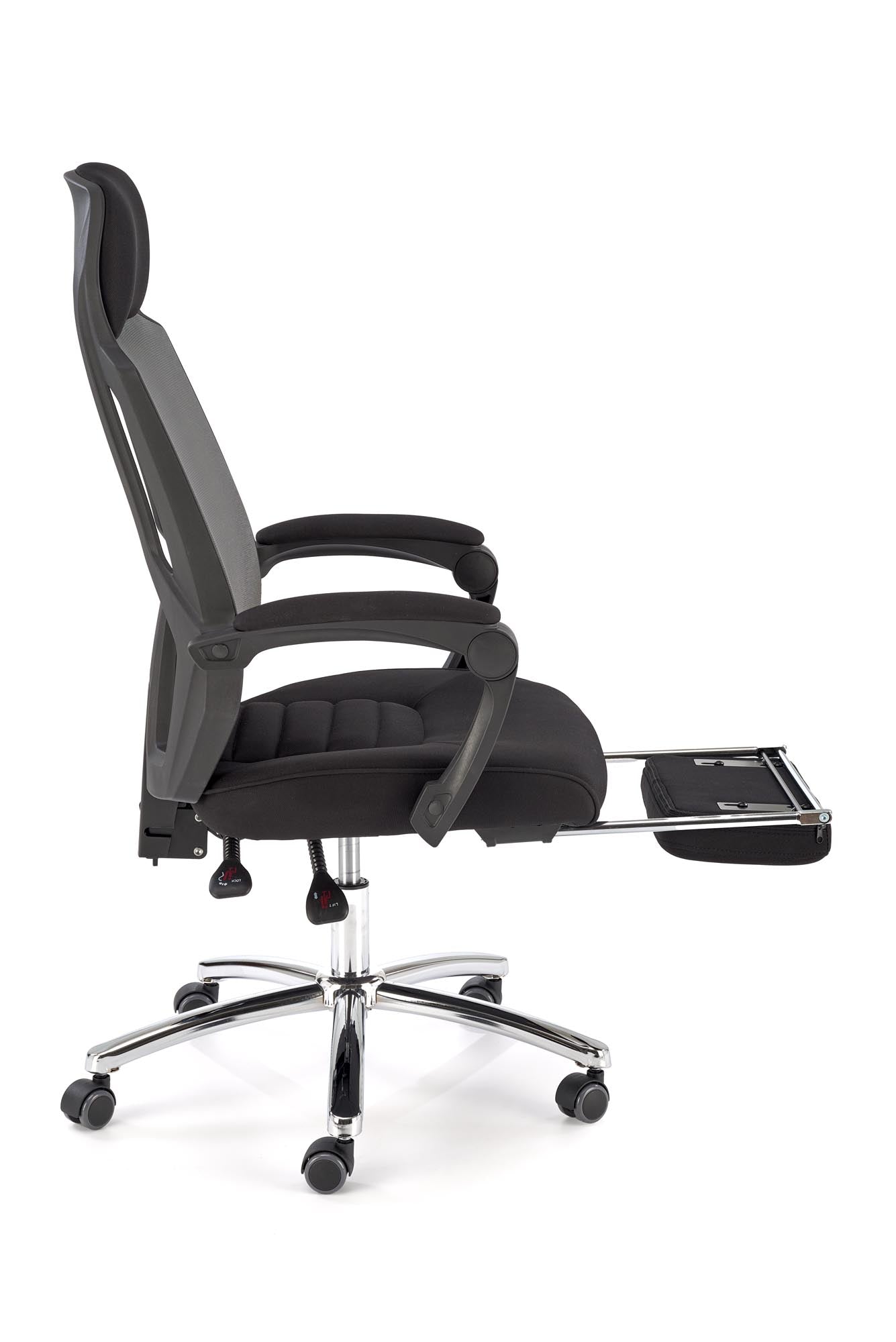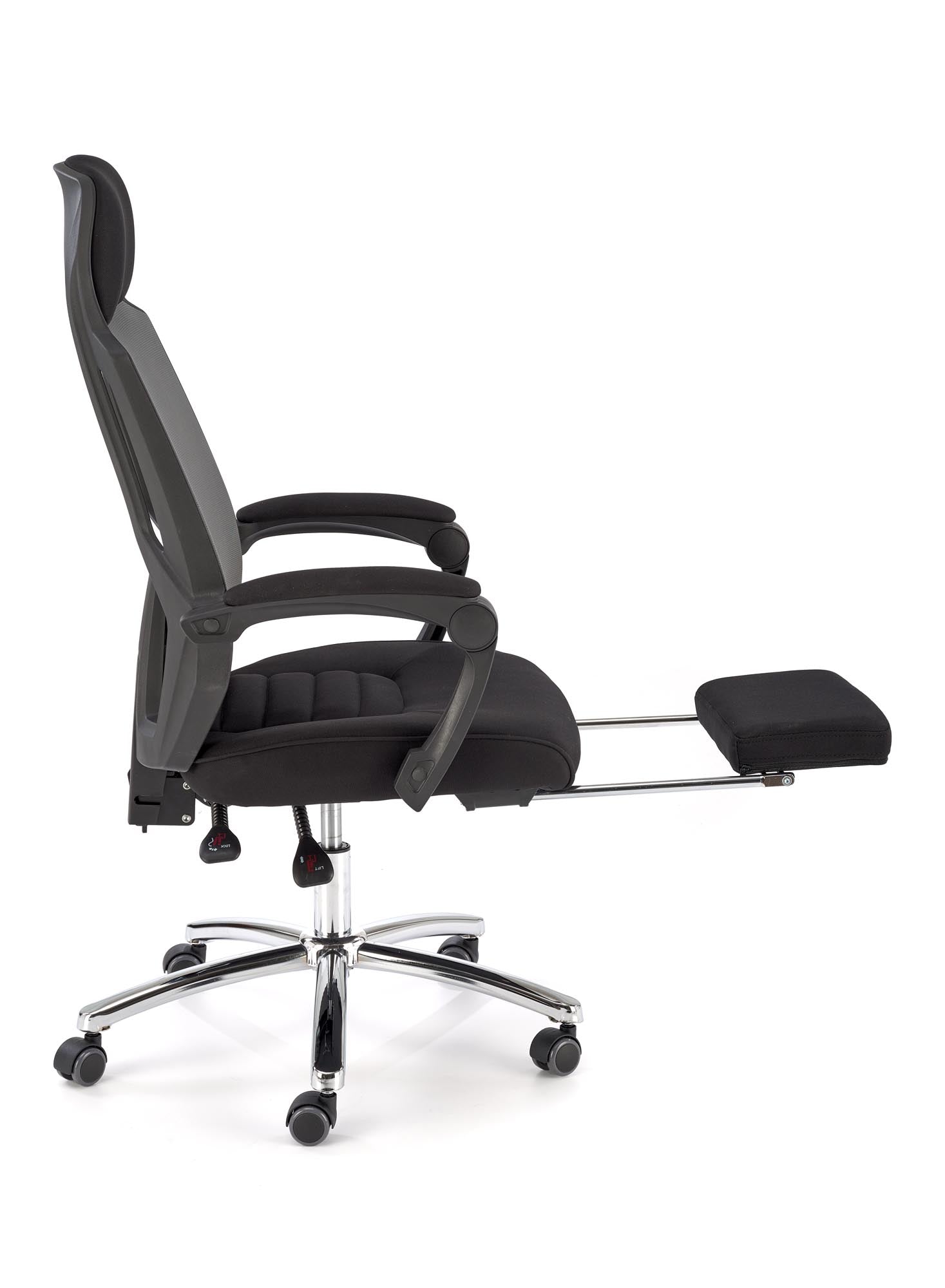 méretek: 65/70-110/110-118/45-53 cm, TILT mechanizmus / lehajtható lábtartó, membránszövet / háló, szín: fekete / szürke