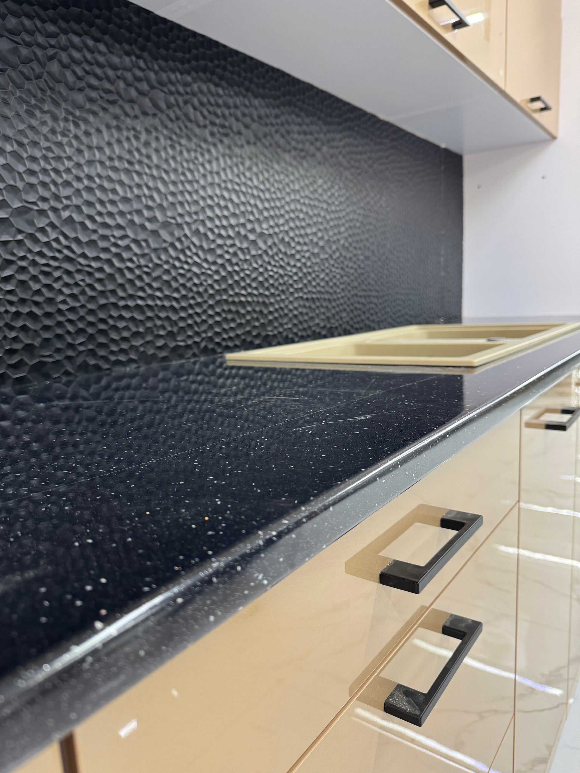 Galaxy Max : Az ár TARTALMAZZA a 38 cm vastag munkalapot ami kérhető egyben és elemenként illetve lábtakaró , pvc hátfal panel , 1/2 medencés süllyesztett GRÁNIT mosogató tálcát!