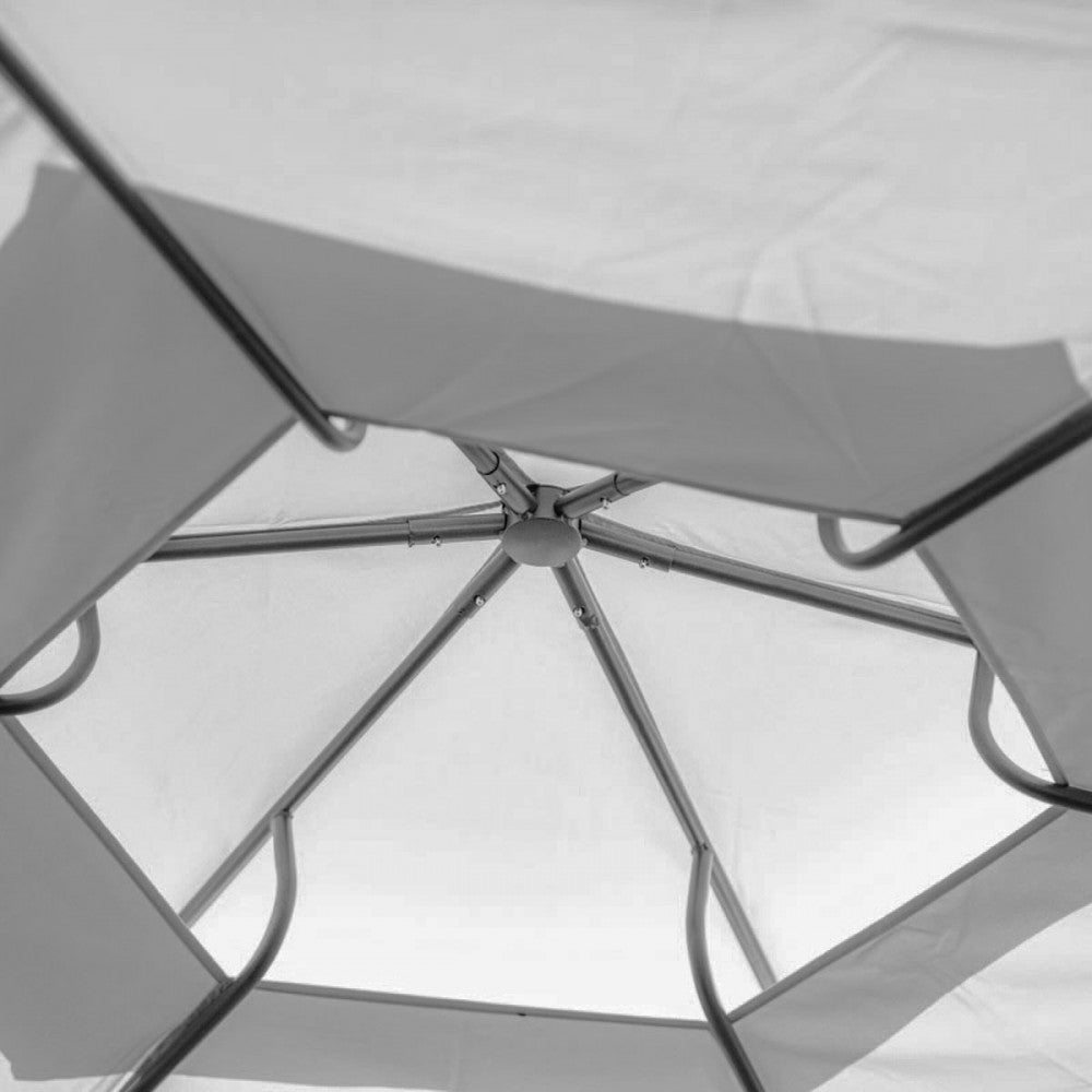A Gavi pavilon tömör szerkezet acélgerendákkal van megerősítve, ami növeli a kerti sátor stabilitását. A tetőhöz 180g poliésztert használtak plusz PA réteggel, míg az oldalfalak 160g poliészterből készültek. A felhasznált anyagoknak köszönhetően a kerti pavilon több évszakon át jól működik.
